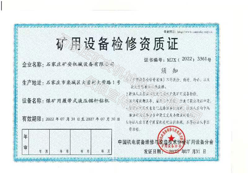 石家莊礦安機械設備有限公司成立于2011年3月,公司位于風景優(yōu)美、科技發(fā)達、交通便利的石家莊市欒城區,是一家專注生產煤礦井下支護機具(錨桿鉆機)和安全鉆機(防突,架柱等)及氣動隔膜泵等礦用機械設備的********,是國內煤礦機械裝備的生產商和服務商,根據用戶需求提供井下適用的鉆機施工解決方案。公司致力于打造研發(fā)、制造、銷售、服務為一體的現代化企業(yè),全心全意為煤礦生產保駕護航。 ? 公司建有裝配車間、機加車間和調試車間,擁有嚴格的質量控制體系、先進的產品開發(fā)系統、完善的試驗檢測設施、良好的售后服務保障。先后與中煤科工集團沈陽研究院、西安研究院、太原理工大學、燕山大學等知名院校建立了緊密的合作關系。 ? 公司產品主要銷往山西、陜西、山東、內蒙古、黑龍江、云南、貴州等七十多個礦區和地方煤礦,擁有一支成熟的售后技術團隊,并且和中煤集團、華電煤業(yè)集團、華潤煤業(yè)集團、潞安集團、山西焦煤、淮北礦業(yè)等國內知名企業(yè)達成長期合作關系。 ? 公司始終秉持“讓煤礦生產更安全”的發(fā)展使命,力求誠信與創(chuàng)新,追求卓越與完美,深知“實實在在、心無旁騖做實業(yè)”,這才是本分!石家莊礦安機械設備有限公司愿與您攜手共進,共同發(fā)展!為客戶創(chuàng)造價值,提供優(yōu)質的產品和*佳的服務是我們永無止境的理念!